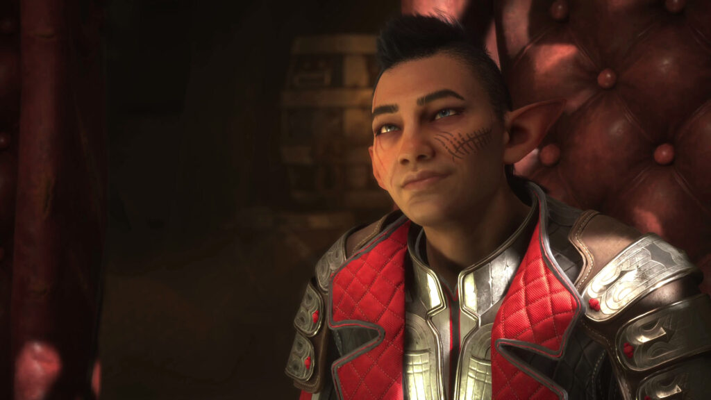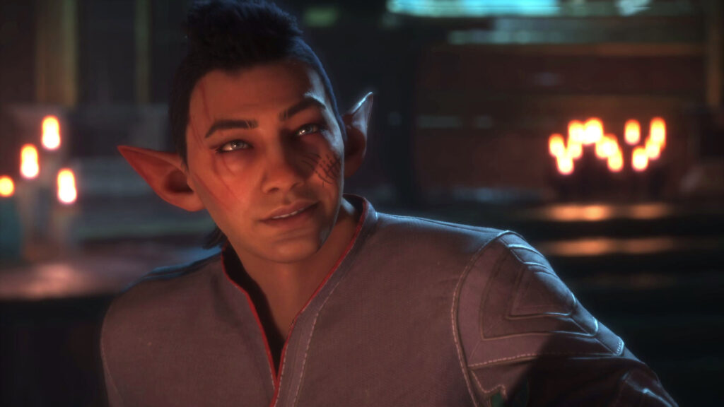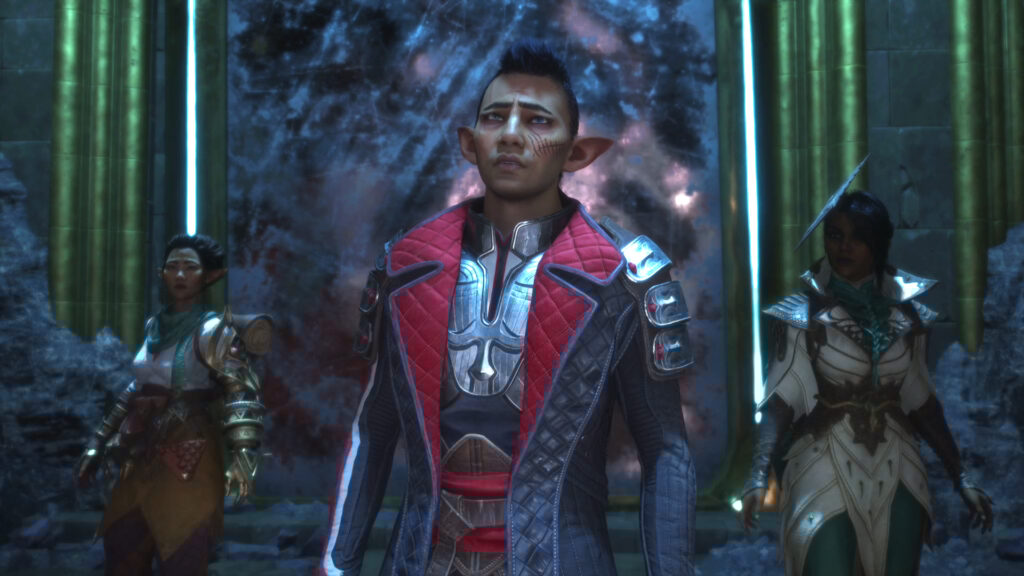 A former slave, he was controlled by blood magic and forced to hunt and enslave fellow elves after his own magic manifested. The vallaslin is a mark of shame, not honor, applied by his former masters as a record of his successful “hunts”.